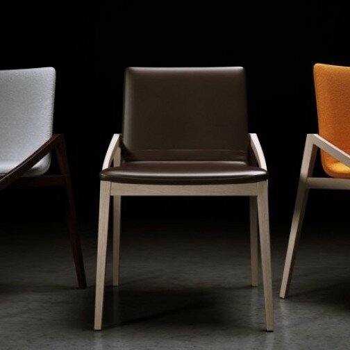 Elegantné a viacúčelové. Capita je široká stolička, ktorá zaberá takmer toľko miesta ako kreslo a súčasne má ľahký a teplý vzhľad vďaka tenkému sedadlu, ktoré sa zdá, že pláva nad konštrukciou. Vzhľadom na svoj dizajn funguje dobre samostatne alebo v spojení s inými kusmi.