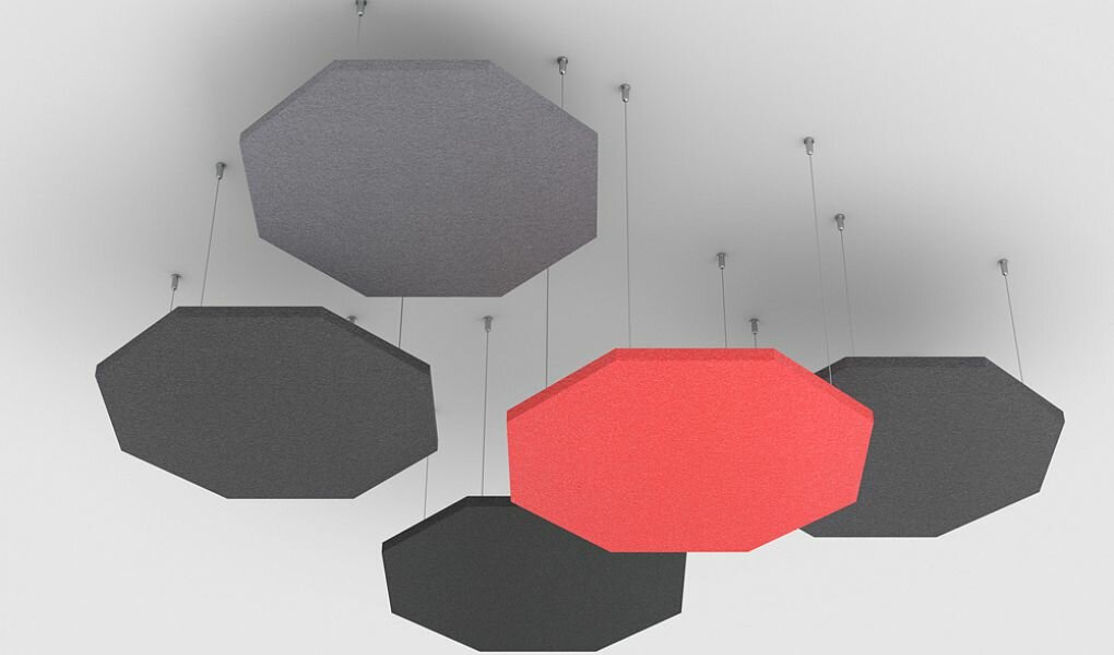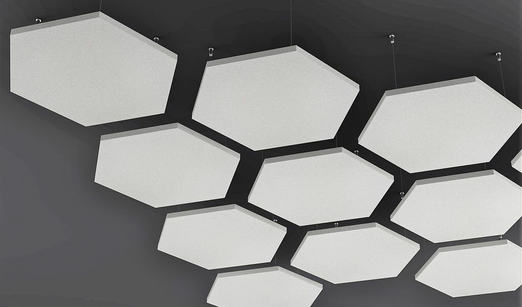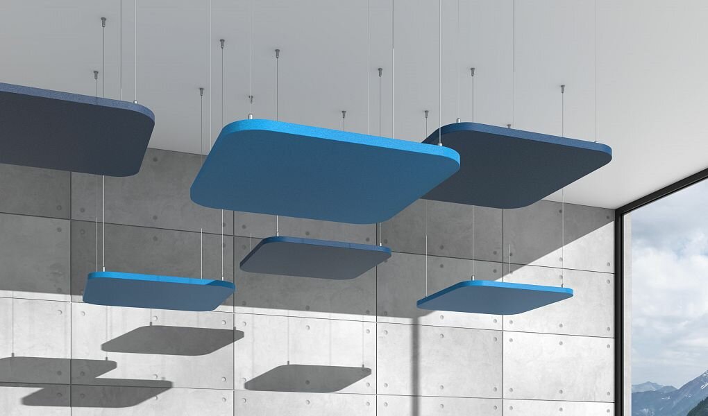 Akustické stropné panely Fluffo AIR sú ideálne do veľkých priestorov - open space kancelárie, široké chodby a priestranné haly, kde je akustický efekt stenových panelov obmedzený.