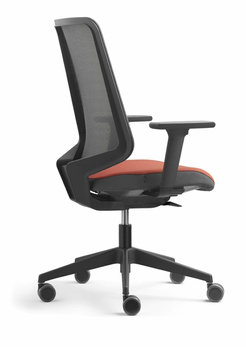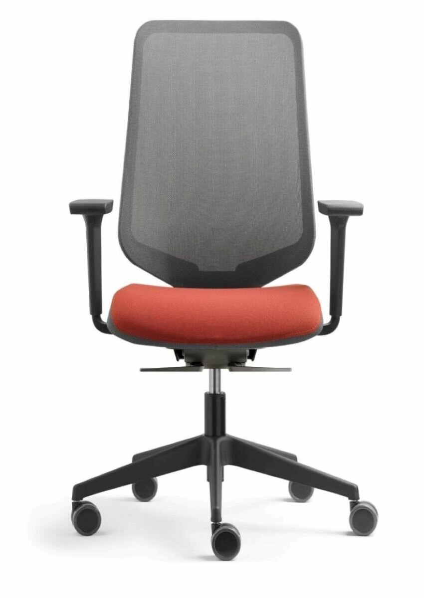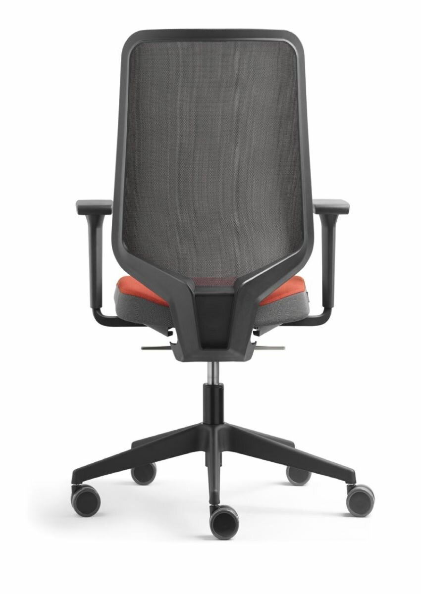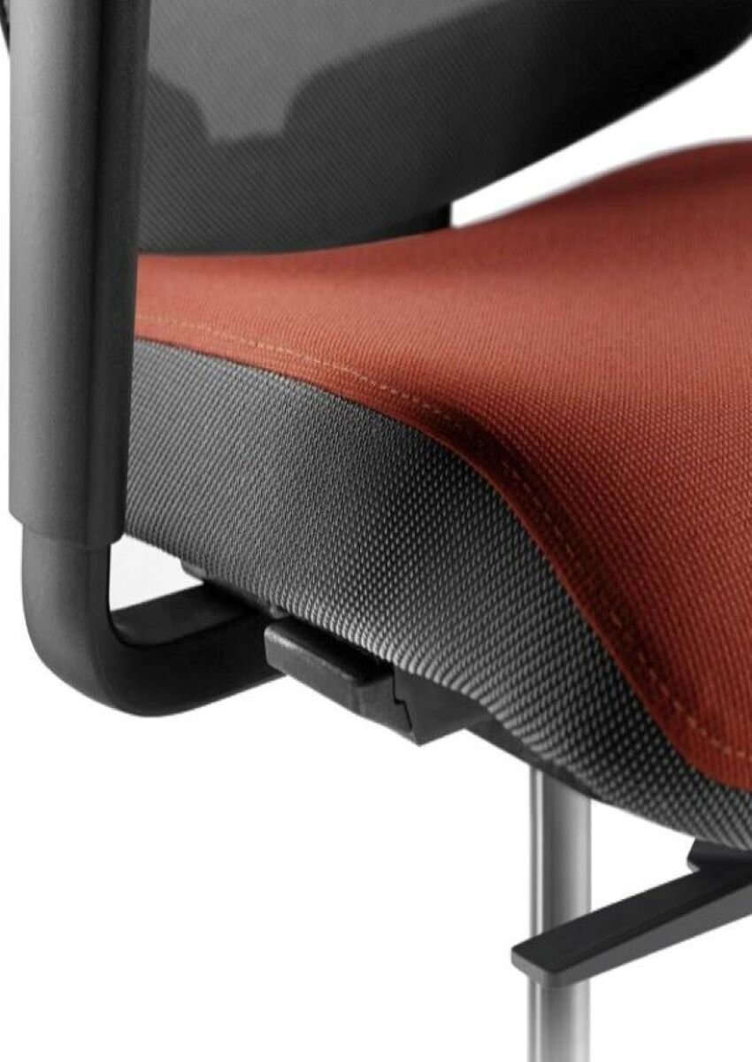 Pohyblivé operadlo vďaka otočným bodom v ráme chrbtovej opierky Vynikajúca podpora a komfort Vysoko funkčné odolné materiály, vysoká estetická úroveň Mechanizmus Synchro Motion, 3D ramená Sieťová chrbtová opierka