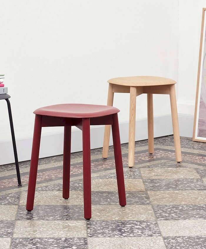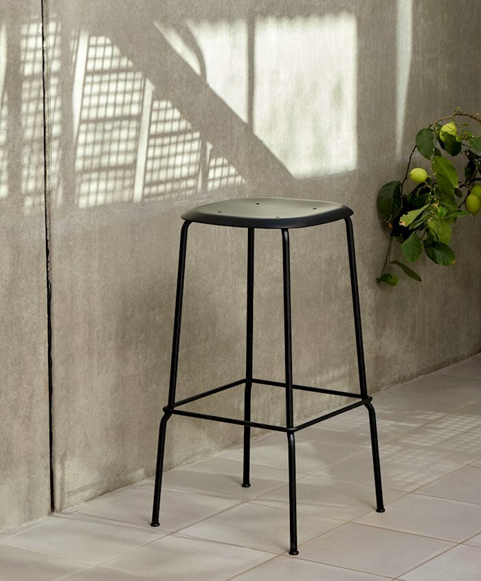 Barová stolička Soft Edge v rôznych povrchových úpravách má dlhé oceľové nohy, ktoré zvýrazňujú minimalistickú estetiku a vytvárajú pocit ľahkosti.