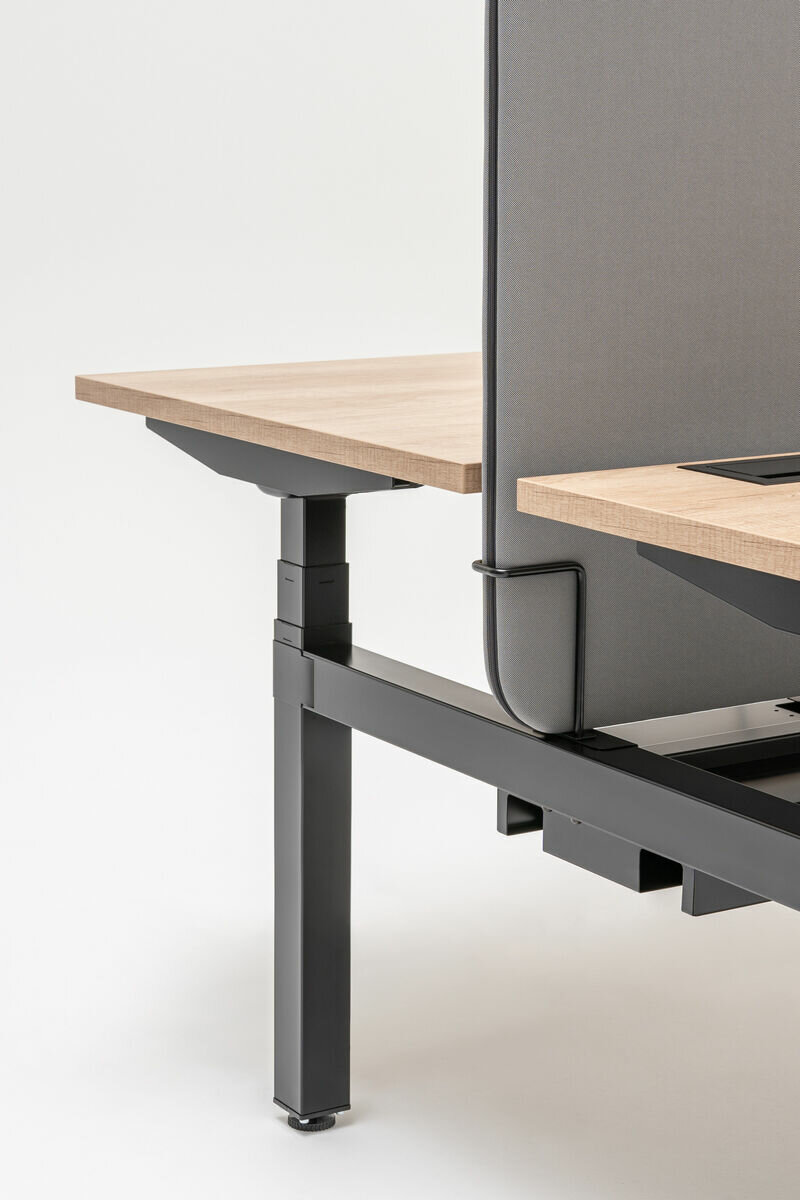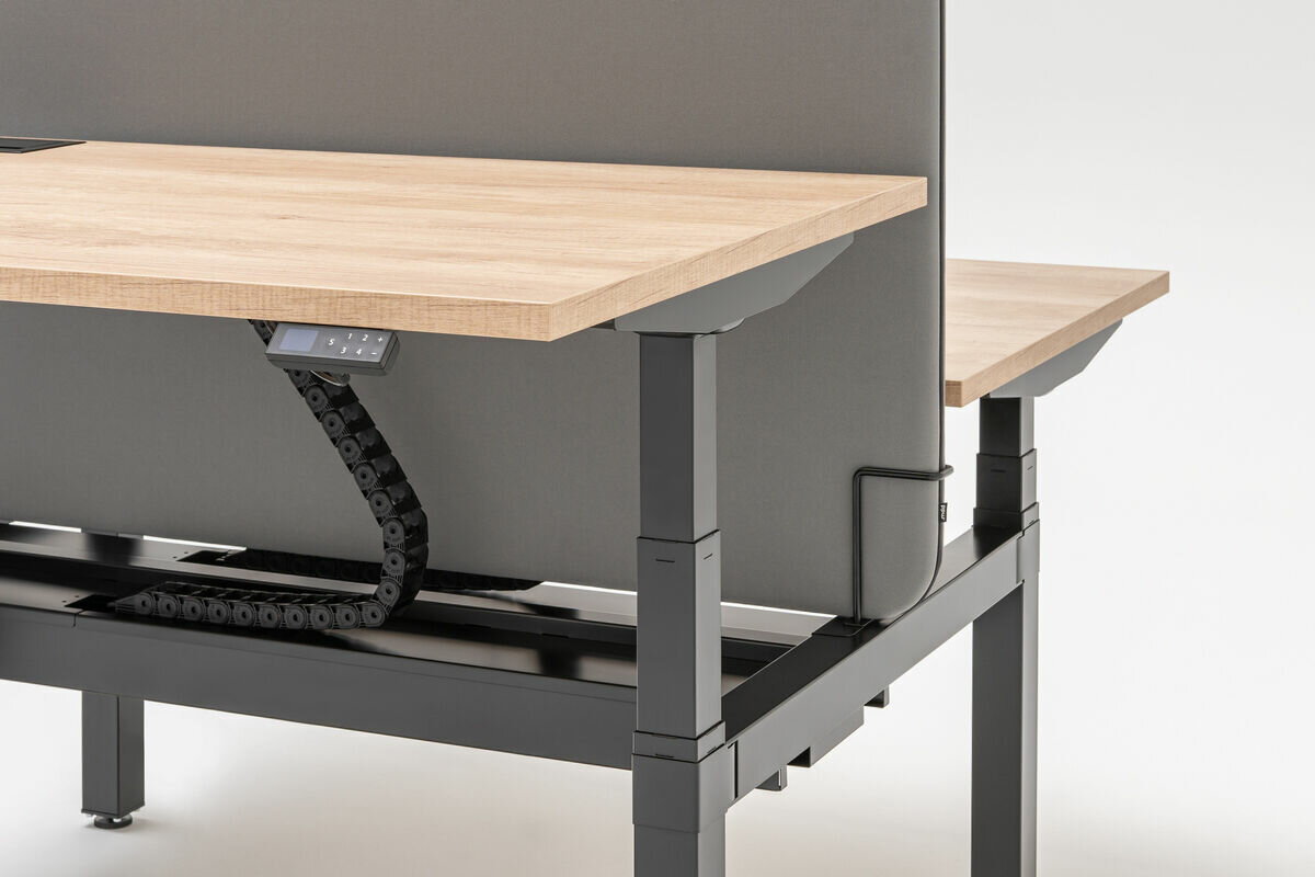 Vďaka elektrickému nastaveniu výšky pracovnej dosky sa pracovný priestor prispôsobí individuálnym potrebám a zároveň predstavuje alternatívu k dlhotrvajúcemu sedavému zamestnaniu. Ovládací panel so vstavanou pamäťou pomáha pri nastavovaní preferencií, ako aj pri obnovovaní týchto nastavení.