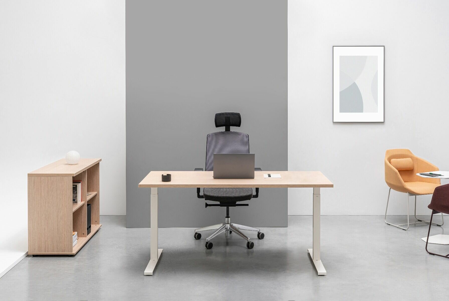 Vďaka elektrickému nastaveniu výšky pracovnej dosky sa pracovný priestor prispôsobí individuálnym potrebám a zároveň predstavuje alternatívu k dlhotrvajúcemu sedavému zamestnaniu. Ovládací panel so vstavanou pamäťou pomáha pri nastavovaní preferencií, ako aj pri obnovovaní týchto nastavení.