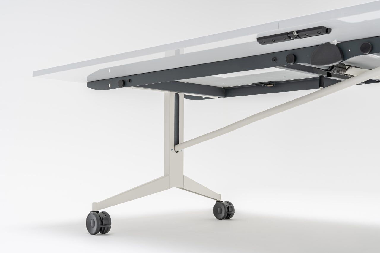 Stôl Plex je skvelým spoločníkom na rôzne stretnutia, workshopy a školenia. Pokročilý skladací mechanizmus umožňuje manévrovanie so stolom len jednej osobe. Po zložení sa šírka stola zmenší na 50 centimetrov, čo pomáha premiestniť stôl cez dvere, prepraviť ho výťahom, alebo uložiť v menších priestoroch. K dispozícii sú tri povrchové úpravy: melamínová doska, nano-tech laminát Fenix, ktorý vyniká vysokou odolnosťou proti poškriabaniu a oderu, ako aj za sucha utieraná tabuľa, umožňujúca vytvárať poznámky priamo na stole.
