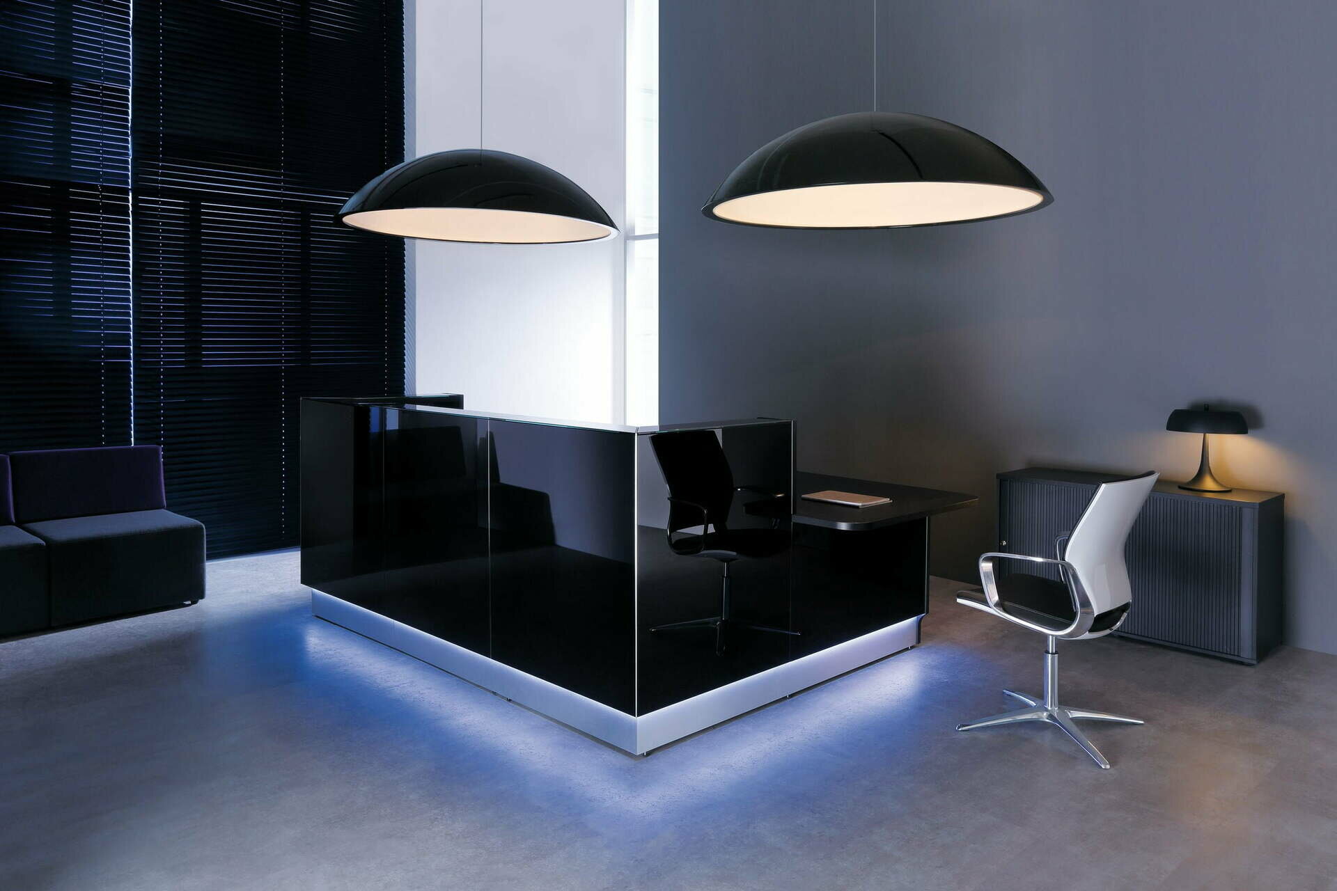 Jednoduchý tvar zdobia hliníkové povrchy, pričom podsvietenie spodnej časti zvýrazňuje sklenenú prednú stranu. Linea má moderný charakter, no jej univerzálny dizajn robí z recepcie zaujímavý akcent aj v klasickejších interiéroch. Vďaka modulárnej konštrukcii je ľahké vytvoriť na mieru rovné alebo rohové usporiadanie v závislosti od priestoru a potrieb. Nízky modul, určený hlavne pre zdravotne postihnutých zákazníkov, funguje aj tam, kde býva kontakt s klientom dlhší. Rozšírená pracovná doska zvyšuje funkčnosť. Na druhej strane - vysoký modul umožňuje prácu v stoji.
